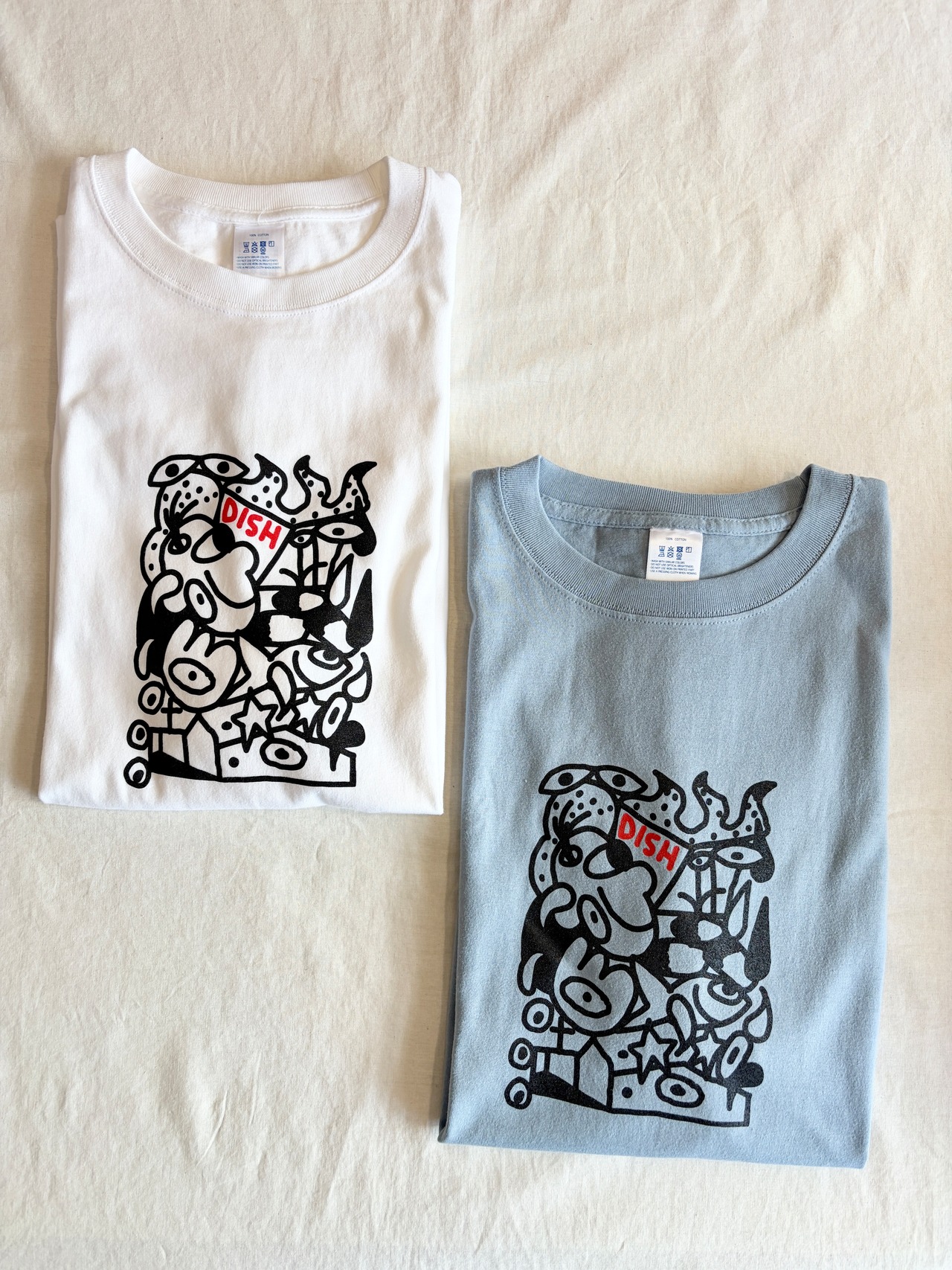 ニューヨークを拠点に活動するアーティストJOHN MOORE(ジョン・ムーア)と、北陸・福井を拠点とするレーベルDISHのコラボTシャツ。