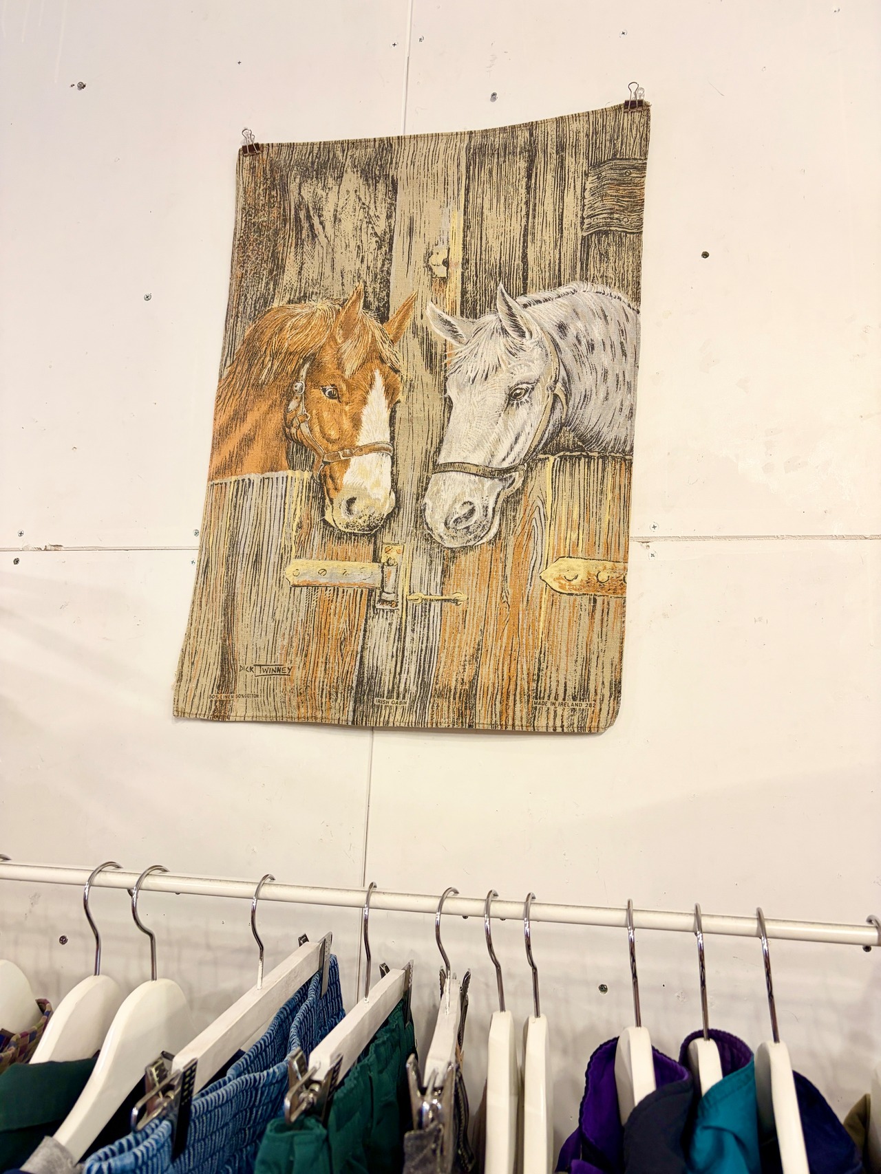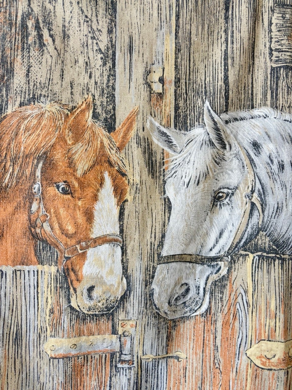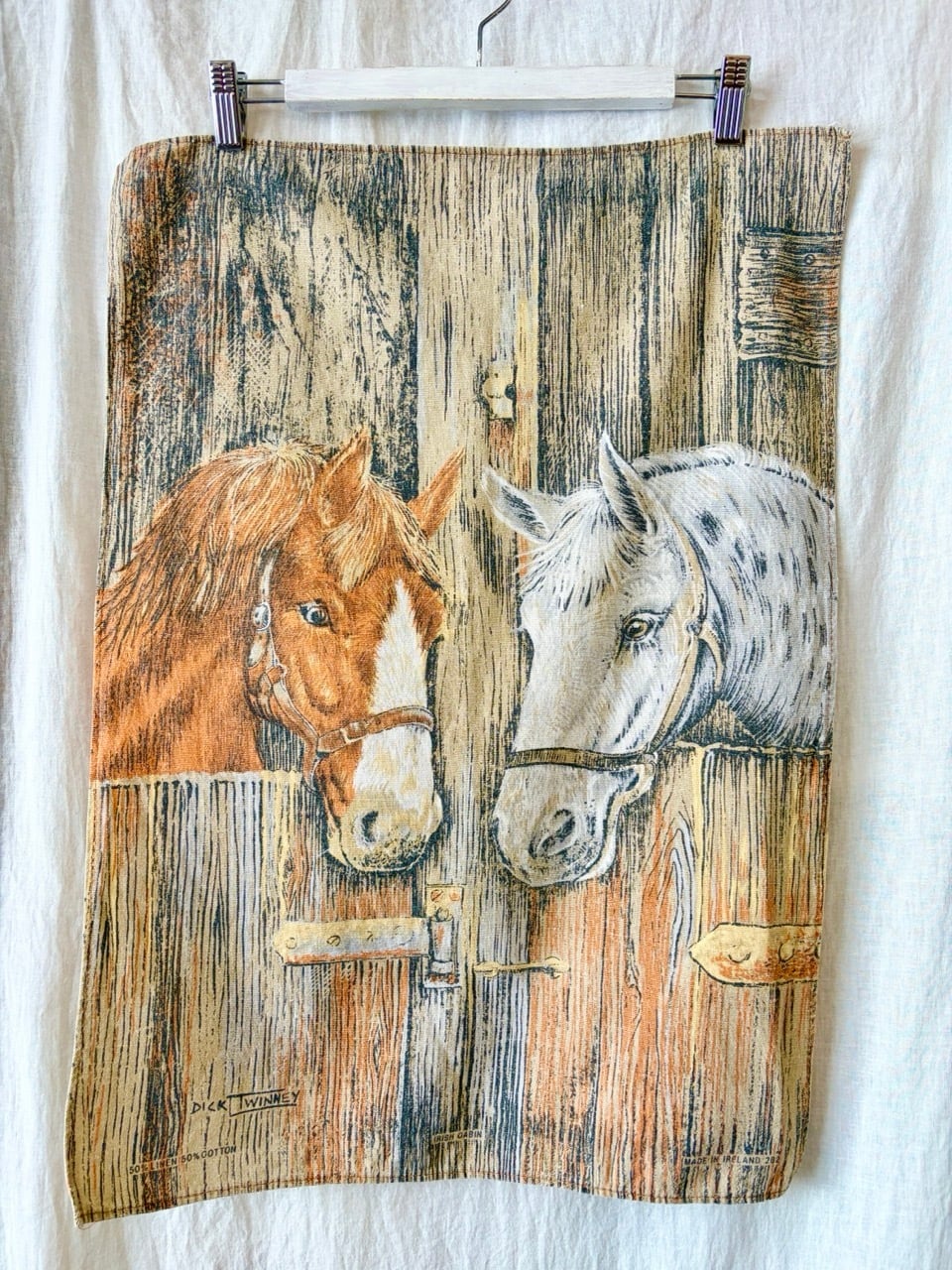 こちらは北アイルランドの老舗リネン製品メーカーMcCaw Allan社のブランドIrish Cabinのもので、イギリスの画家Dick Twinneyによる馬の絵がプリントされています。