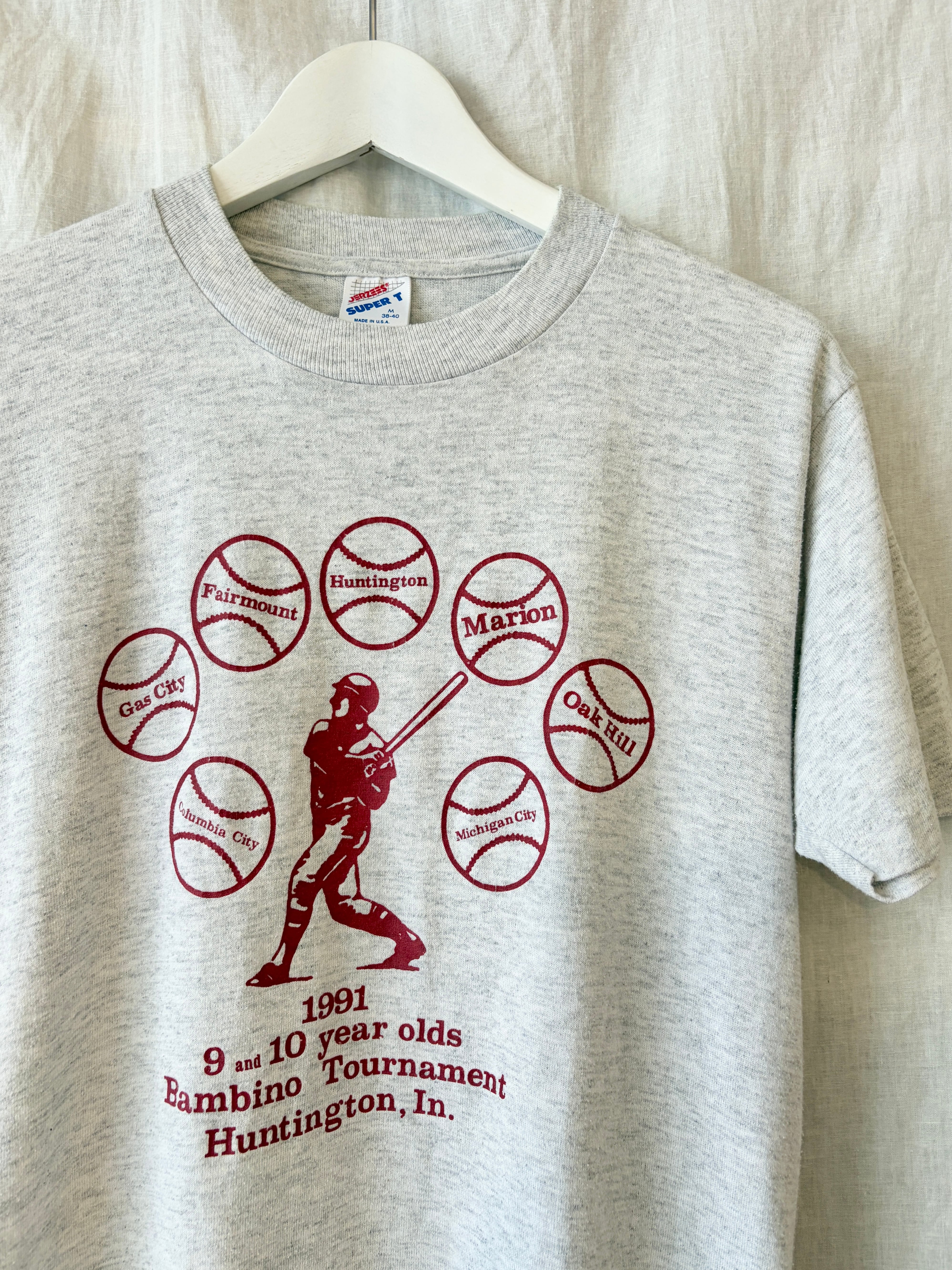 1991年、9歳と10歳の子どもたちによる野球大会のTシャツ。