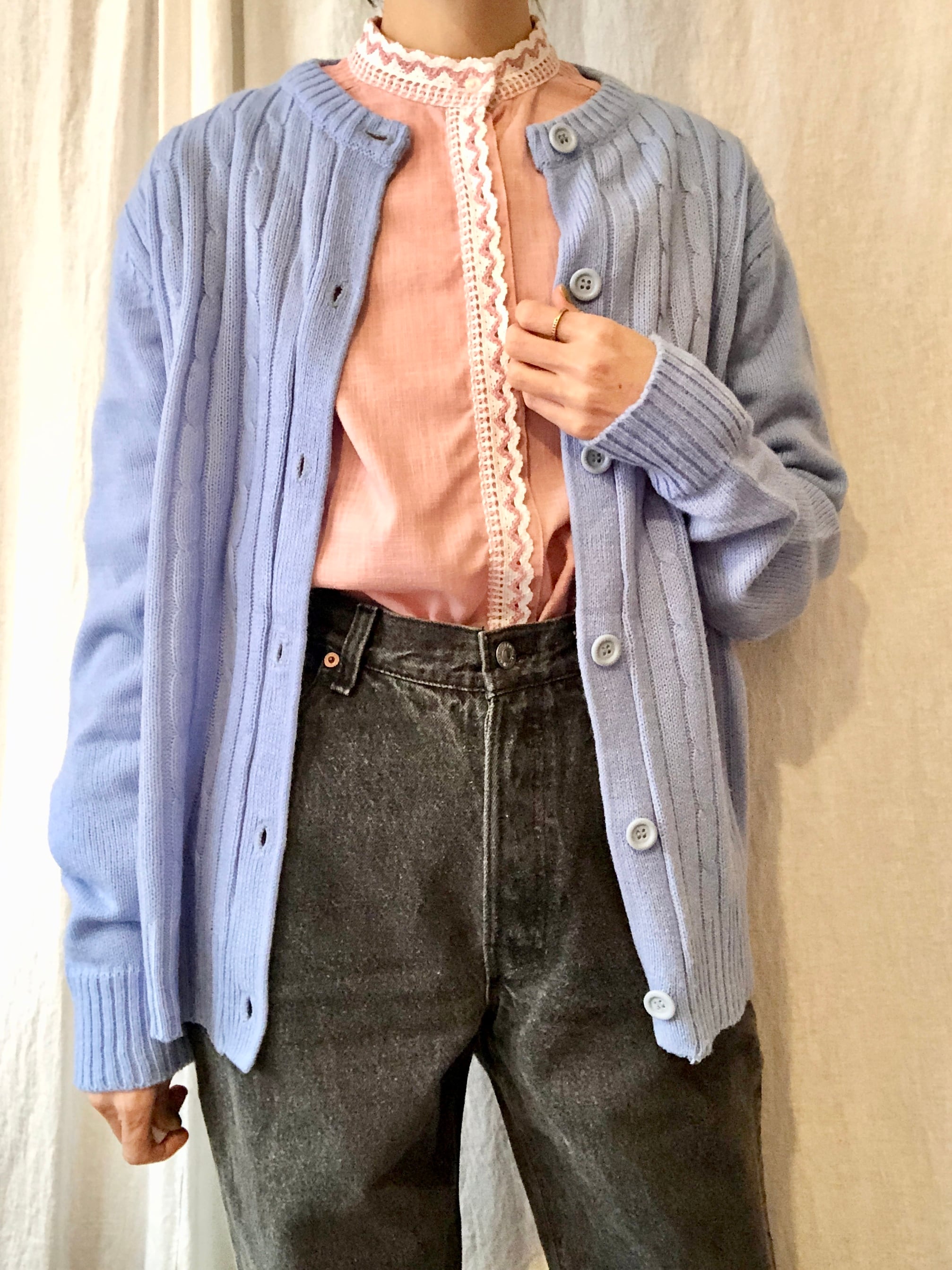 アイスブルーの色味が可愛いカーディガン。