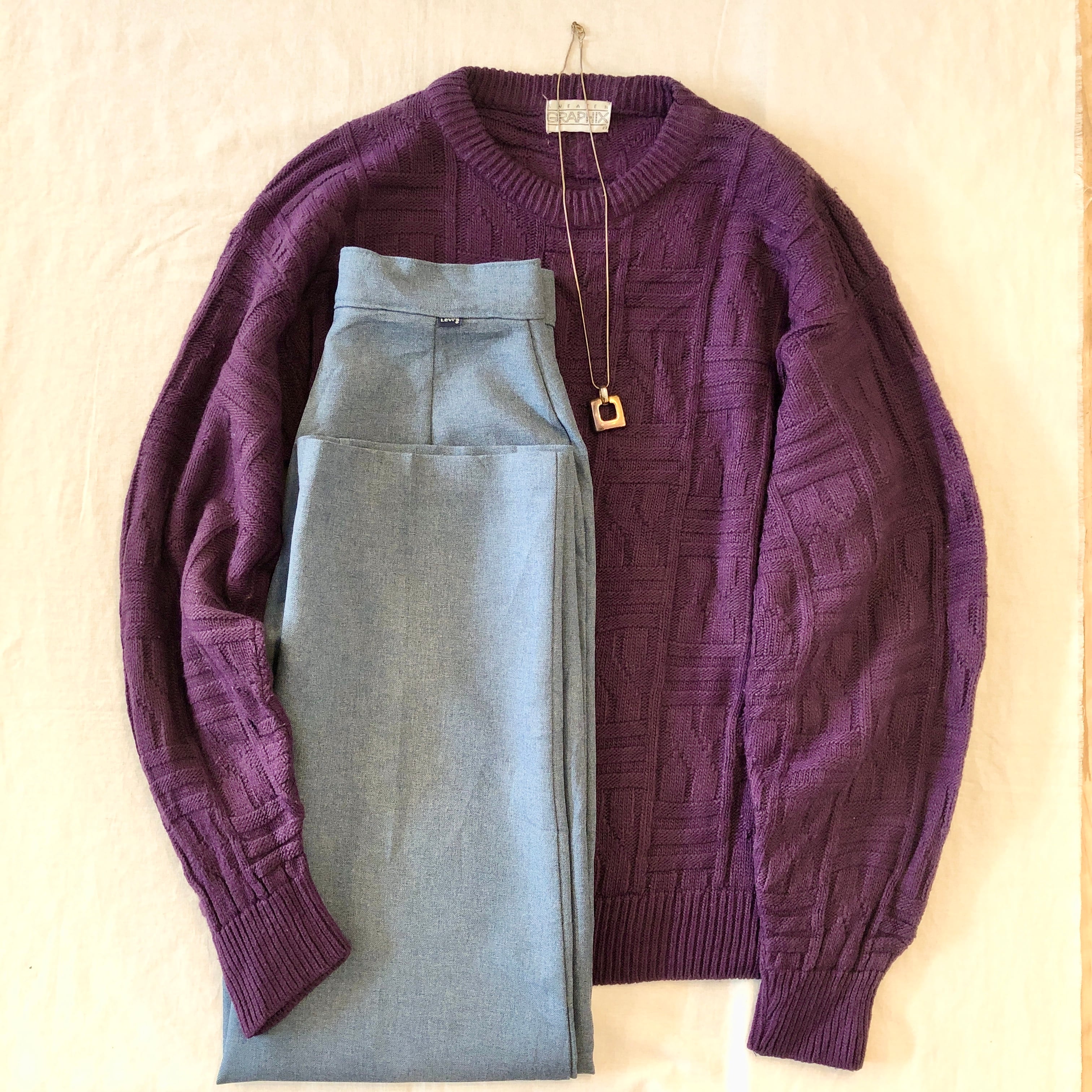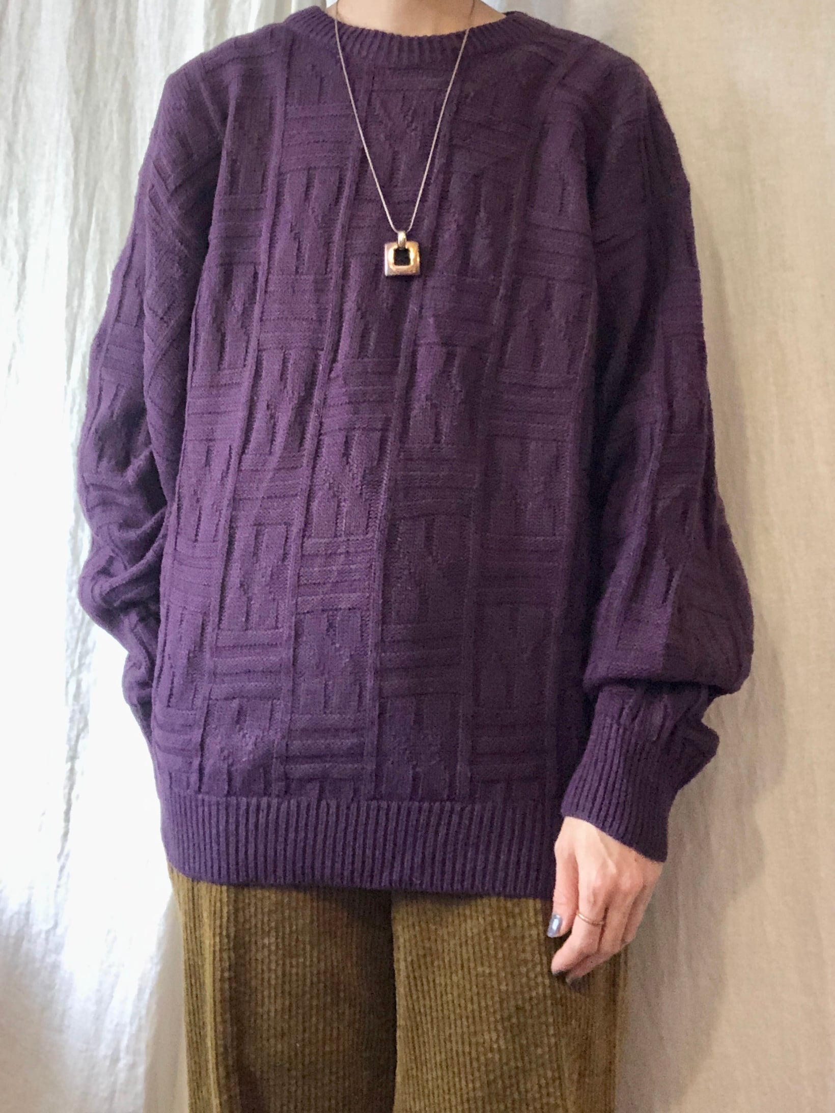 ニットの編み模様がグラフィカルでユニークな一枚。
